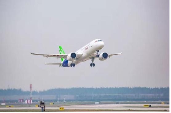 首飛放飛評(píng)審意見(jiàn)宣布后,民航局頒發(fā)了特許飛行證。首飛指令下達(dá),現(xiàn)場(chǎng)傳出歡呼聲。隨后,C919從上海浦東機(jī)場(chǎng)第四跑道起飛。