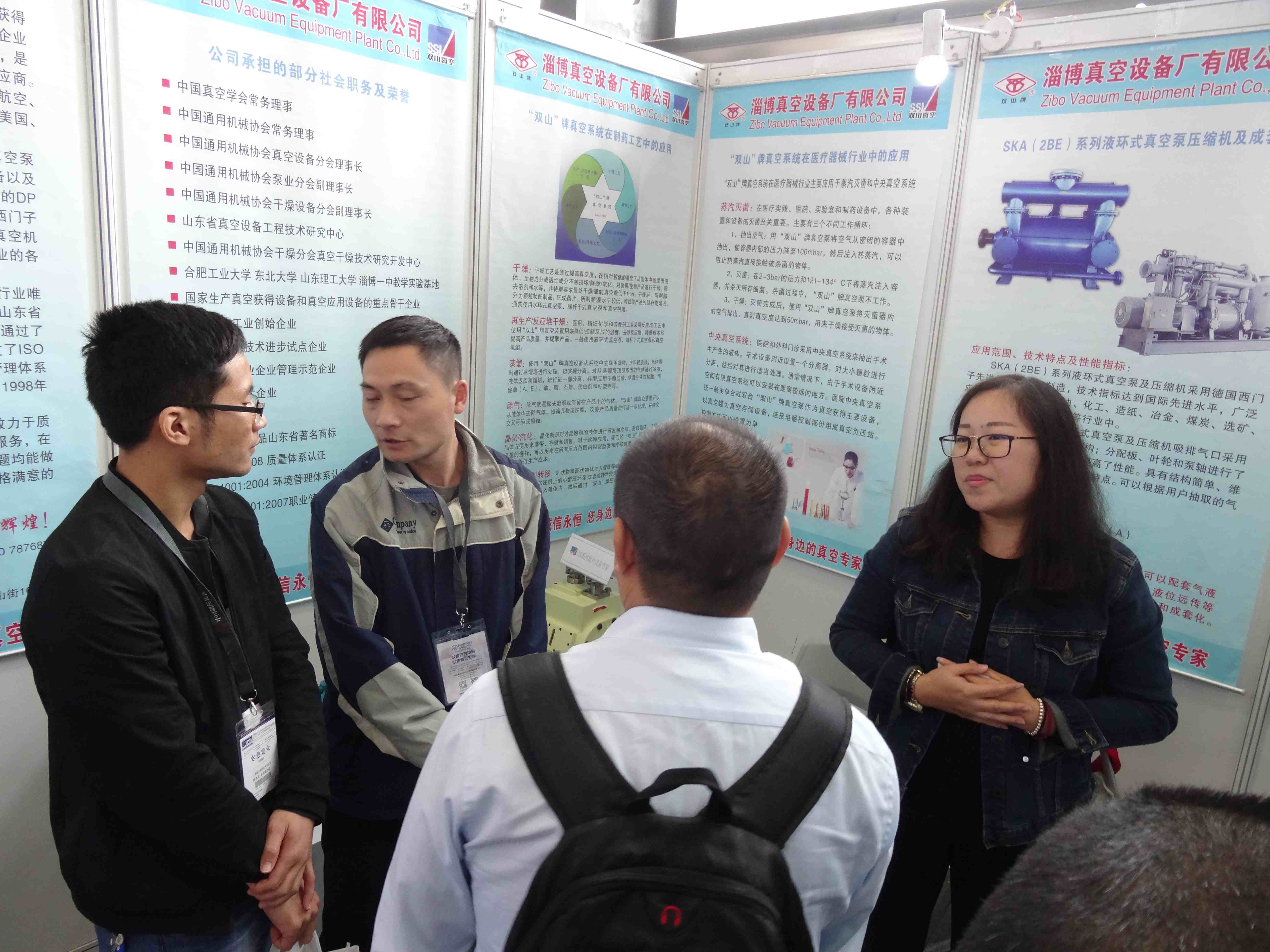 本次展覽會雙山真空展出了制藥機(jī)械配套的技術(shù)先進(jìn)型的真空設(shè)備,在展會期間受到了眾多制藥機(jī)械廠家和專家、同行的高度關(guān)注,紛紛駐足公司展位進(jìn)行參觀交流,現(xiàn)場技術(shù)人員對參觀者提出的問題進(jìn)行詳細(xì)的解答,并獲得了他們的高度認(rèn)可,部分廠家的參觀者當(dāng)場表示希望能夠與我們公司建立長期合作關(guān)系。
